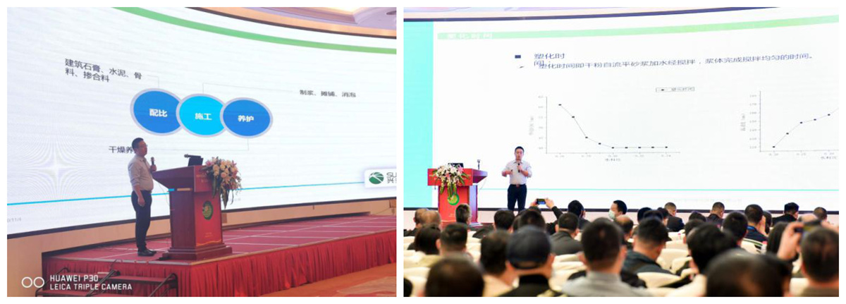2020年11月3日-6日,第十五屆全國石膏技術交流大會及展覽會在江蘇南京舉行。一直專注、專業生產中國特種砂漿助劑產品的企業—蘇州市興邦化學建材有限公司再次參加。本次展覽會公司主要對其主打產品聚羧酸高性能減水劑系列、三聚氰胺高效減水劑系列、消泡劑系列、石膏緩凝劑系列等進行展示,引起了新老客戶濃厚的興趣,紛紛索取樣品和深入了解產品應用特點。同時,公司技術骨干沈焱在交流會中針對《石膏基自流平砂漿工作性能影響因素的研究》進行精彩分析演講。